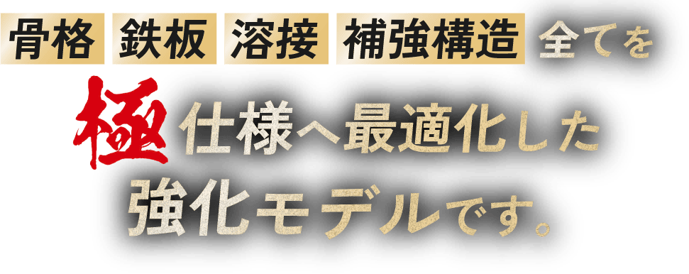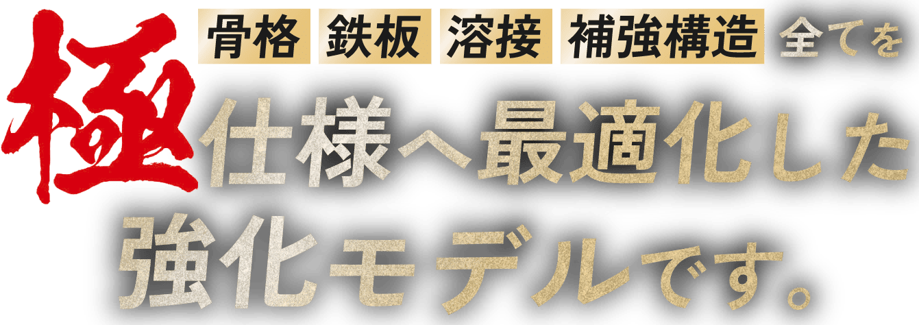 骨格・鉄板・溶接・補強構造全てを極仕様へ最適化した強化モデルです。