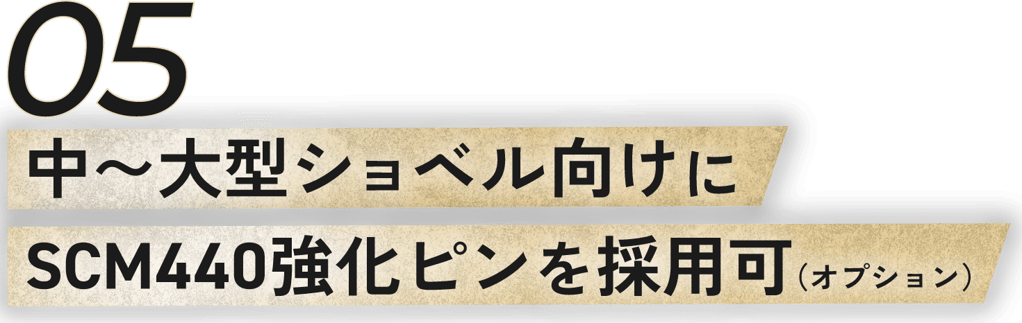 5. 中〜大型ショベル向けに「SCM440強化ピン」を採用可(オプション)