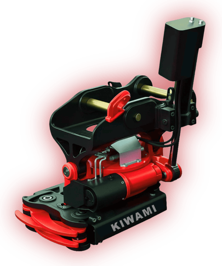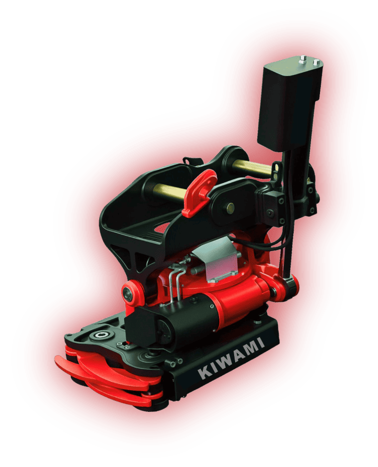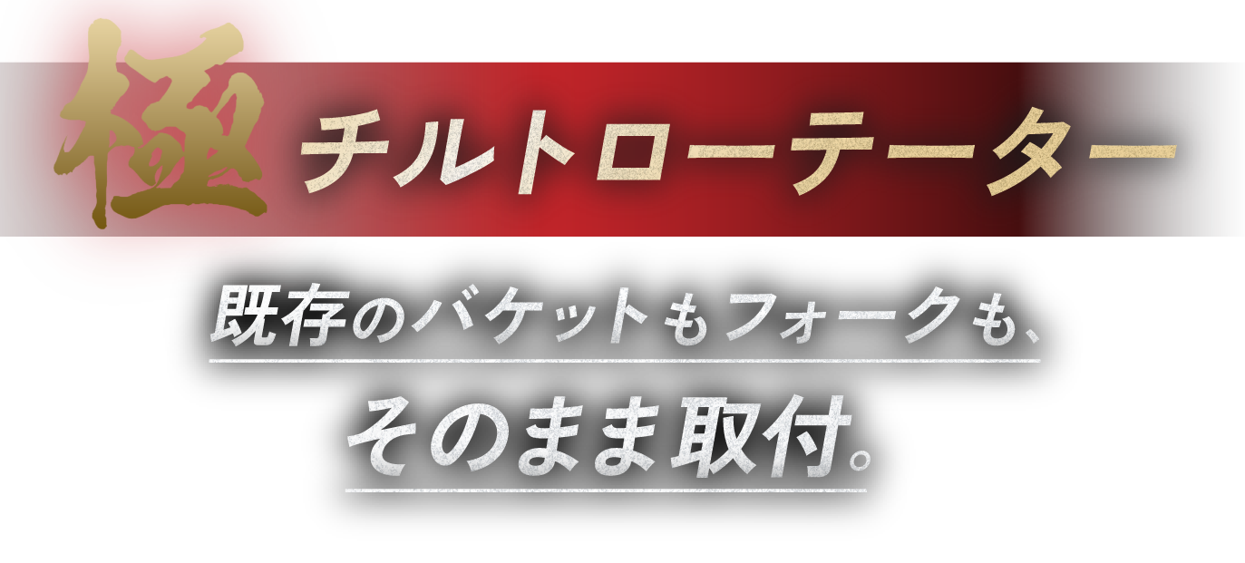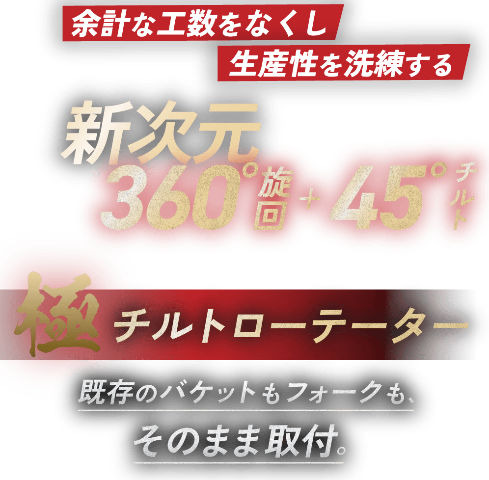 既存のバケットもフォークも、そのまま取付。 余計な工数をなくし、生産性を洗練する、新次元の360°旋回+45°チルト