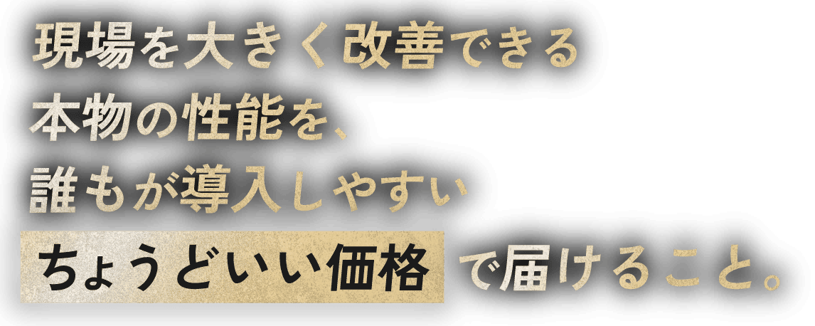 現場を大きく改善できる本物の性能を、誰もが導入しやすいちょうどいい価格で届けること