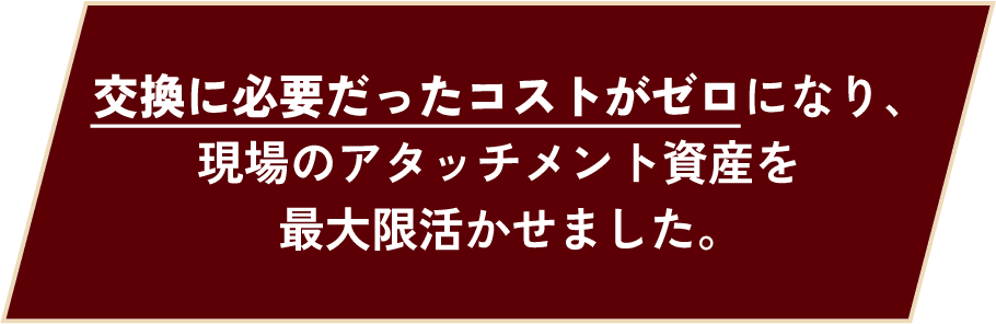 買い替えコストを抑えつつ、手持ちアタッチメントが全部チルトローテーター対応になるという大きなメリットがあります。