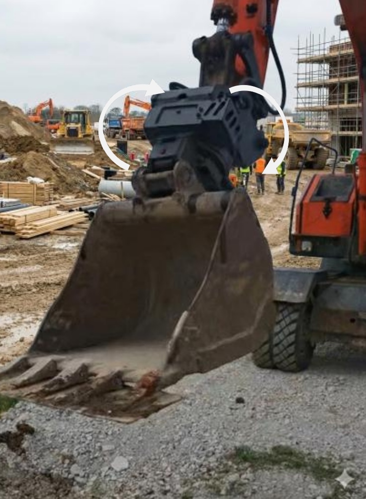 本製品は、クイックヒッチの利便性に360°旋回機能を組み合わせた新しいアタッチメントシステムです。