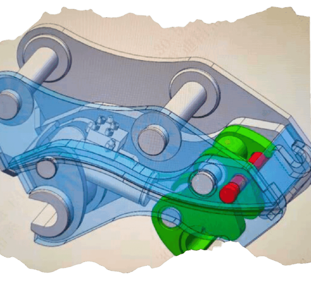 油圧シリンダーに不具合が発生 した場合にもツースの動きを物理的に制限し、アタッチメントを保持します。