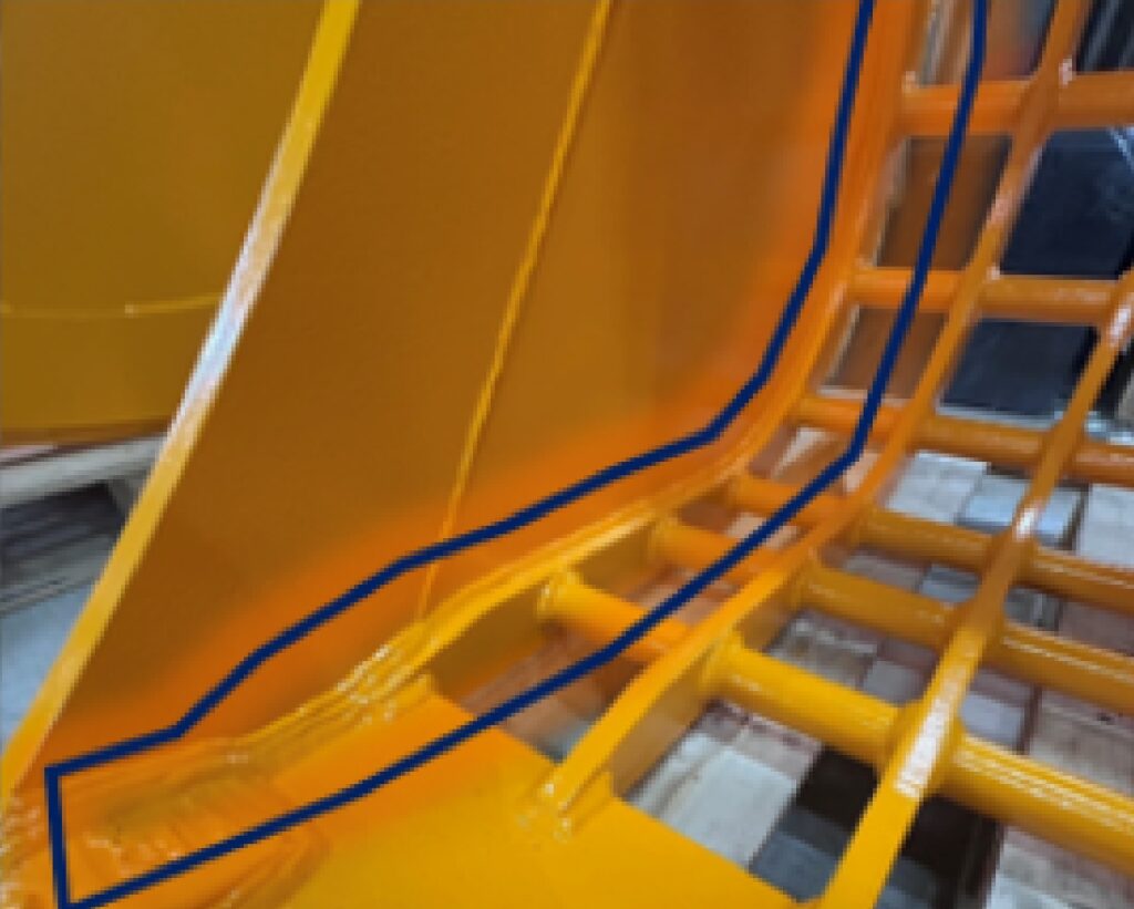 インナー両サイド補強リブでバケットの全体構造をサポート。